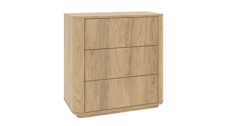 Komoda Zara oblá nízká v kompaktním provedení s jedním sloupcem zásuvek. Minimalistické provedení, elegantní vzhled a moderní bezúchytkové otevírání zásuvek. Čela zásuvek mají průběžnou kresbu dřevodekoru. Originální design spojuje eleganci s praktičností.